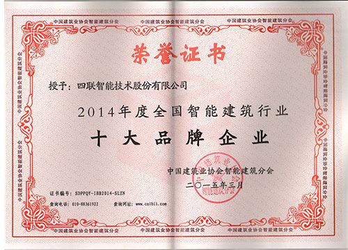 中国建筑业协会智能分公布了“2013-2014“年度智能建筑精品工程”获奖名单,由四联智能承建的“赛格国际购物中心系统工程”项目成功入选