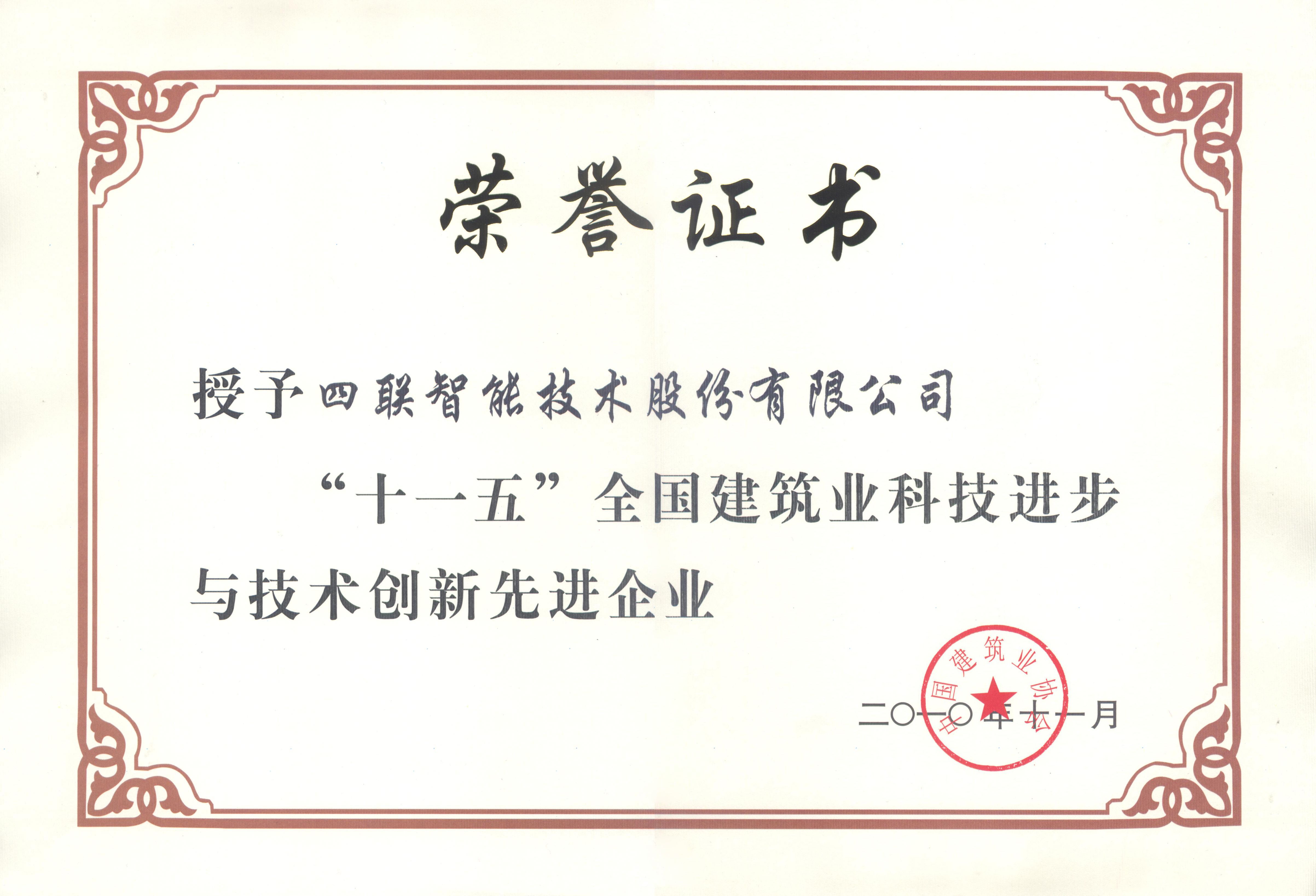 2010年,荣获“十一五全国建筑业科技进步与技术创新先进企业”和“陕西省节能减排创新企业”称号。
