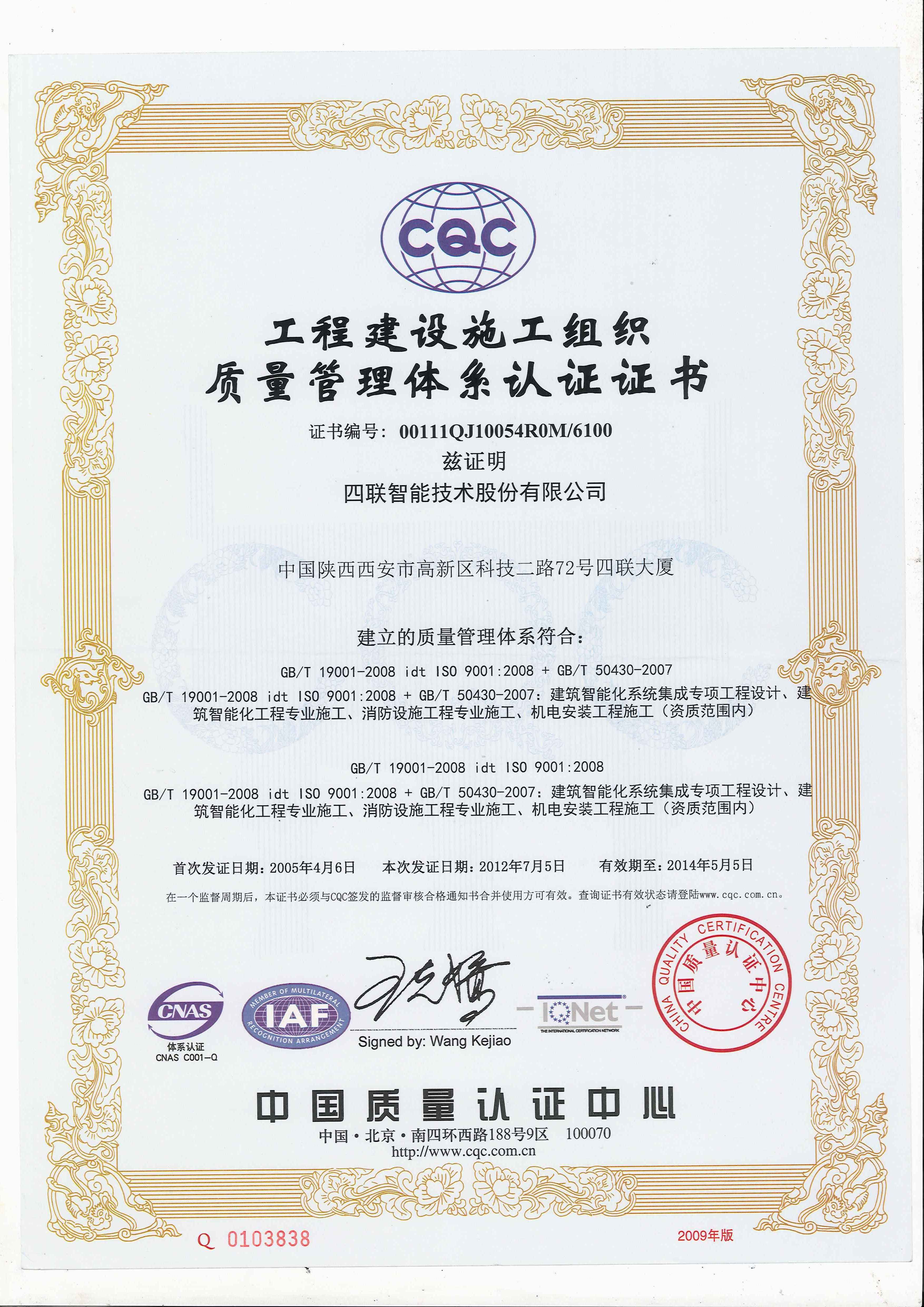 2月,四联智能作为主要参编单位编写的《智能建筑工程施工规范》(GB50606-2010)经国家住建部批准发布实施。