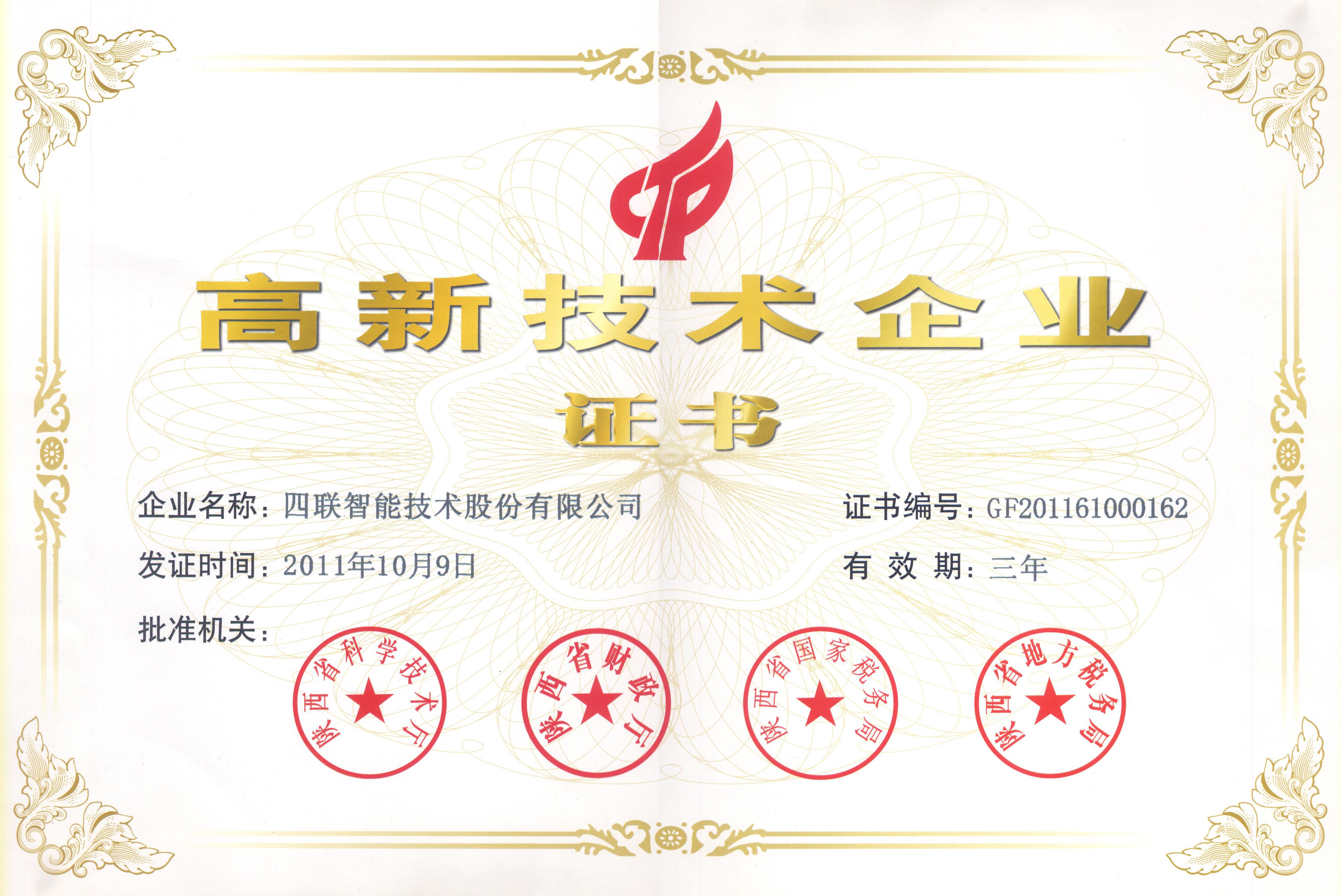 获得高新技术企业认证。