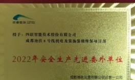 2023年1月,四联智能技术股份有限公司(简称:四联智能,股票代码:430758)成都地铁8号线机电及装饰装修维保项目部被成都地铁运营有限公司运营一公司授予“2022年安全生产先...